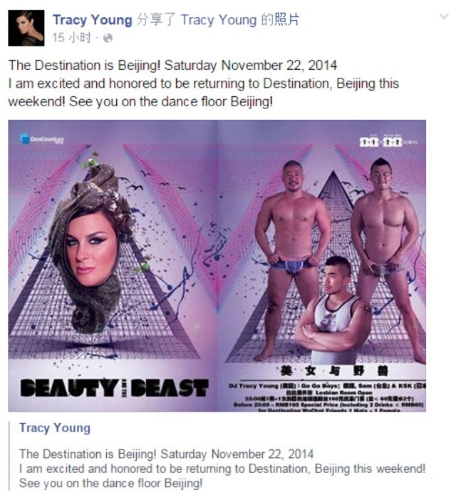 【DJ Tracy Young】:目的地北京,周末舞池见!美国著名拉拉DJ与3位壮男与你不见不散!